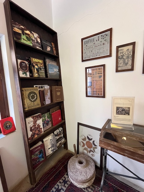 On the upper floor, there is a literary section featuring coffee books and maps about the coffee’s origin and history around the world.